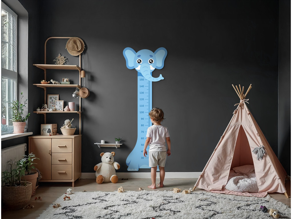 Il metro da parete per bambini a forma di elefante aiuta i bambini a seguire la loro crescita e allo stesso tempo rende più accogliente la loro cameretta. Il simpatico design dell'elefante è giocoso e attraente per i bambini, che vedranno la misurazione dell'altezza come un piccolo rituale. La scala da 30 a 150 cm lo accompagnerà per diversi anni della sua infanzia.