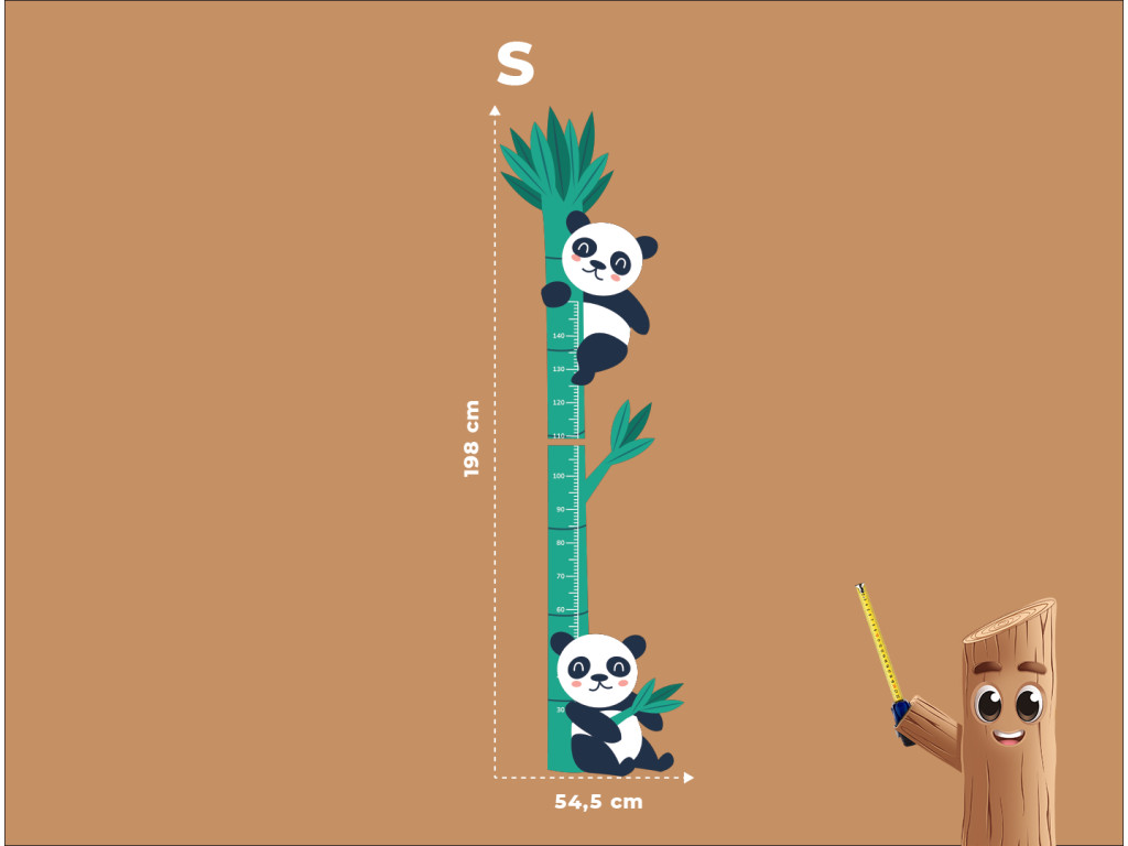 Il metro da parete per bambini a forma di bambù con due panda è un accessorio allegro che renderà più piacevole per i bambini osservare la loro crescita. Un panda si arrampica sul bambù, l'altro è seduto in basso vicino alle radici, rendendo il design giocoso e simpatico. Questo metro misura in modo affidabile l'altezza fino a 150 cm e allo stesso tempo rende più accogliente ogni cameretta.