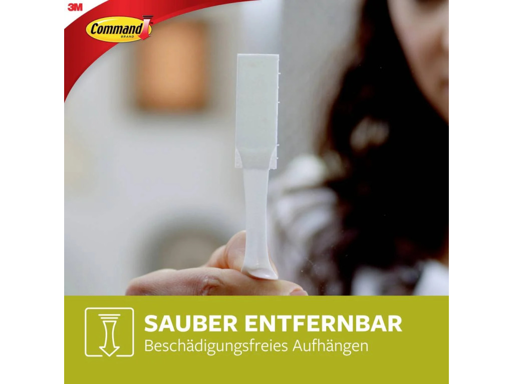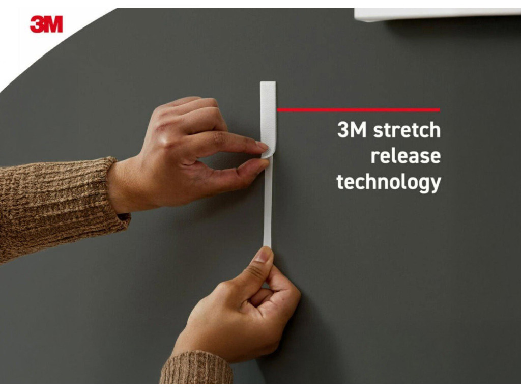 Le strisce adesive 3M Command™ Strips di dimensione L consentono di appendere quadri e decorazioni in modo rapido, pulito e sicuro senza chiodi e senza danneggiare le pareti. Un set può sostenere fino a 7,2 kg, sono facili da applicare e si rimuovono senza lasciare residui di colla. Funzionano secondo il principio del velcro, consentendo di sostituire facilmente i quadri in qualsiasi momento.