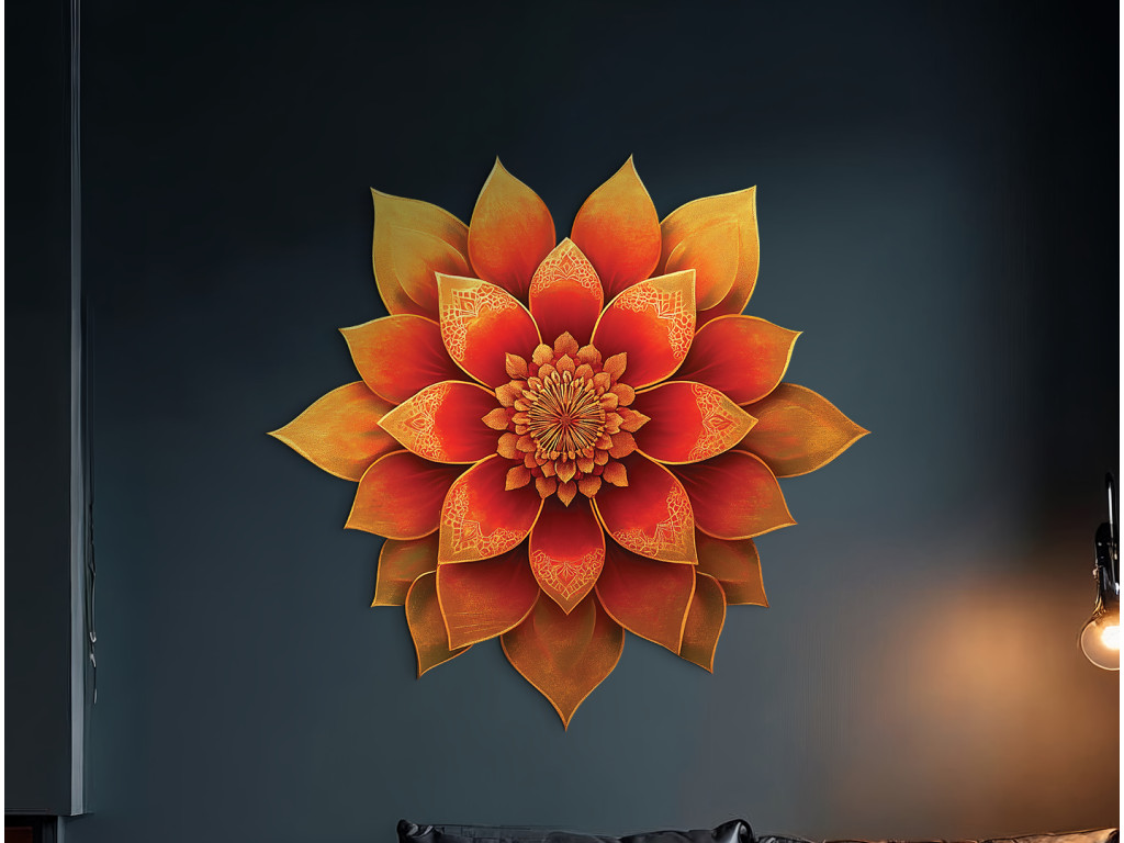 La mandala dai ricchi toni arancioni irradia calore, creatività e benessere. Ricorda il tramonto e crea un'atmosfera di armonia interiore e tranquillità.